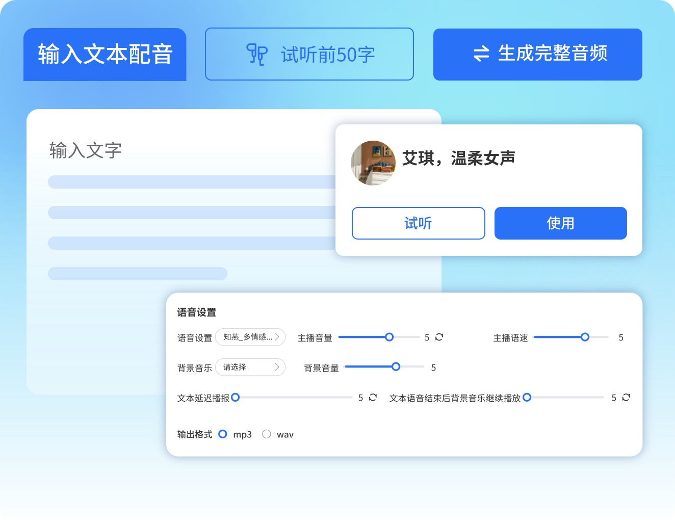 极速转换,大量主播,多种音色供您选择,总有一款适合您