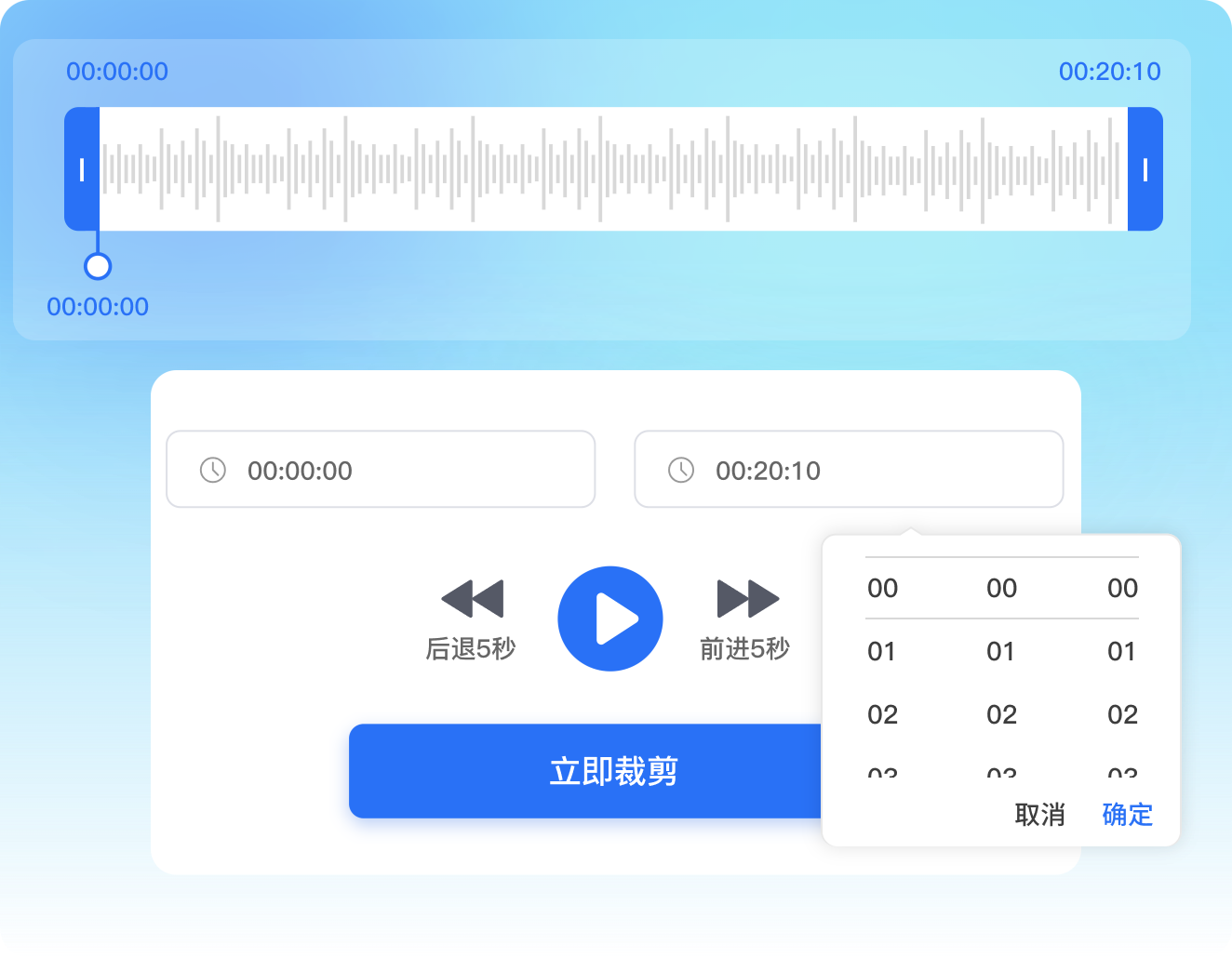 自定义裁剪,支持拖拽式选定剪裁区域,快速生成音频文件