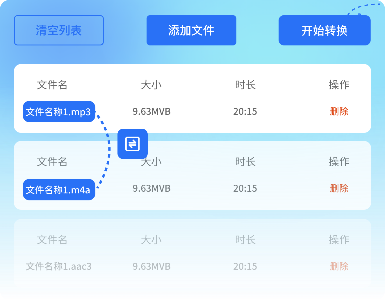 支持将音频格式转换为各大主流音频格式,快速导出文件